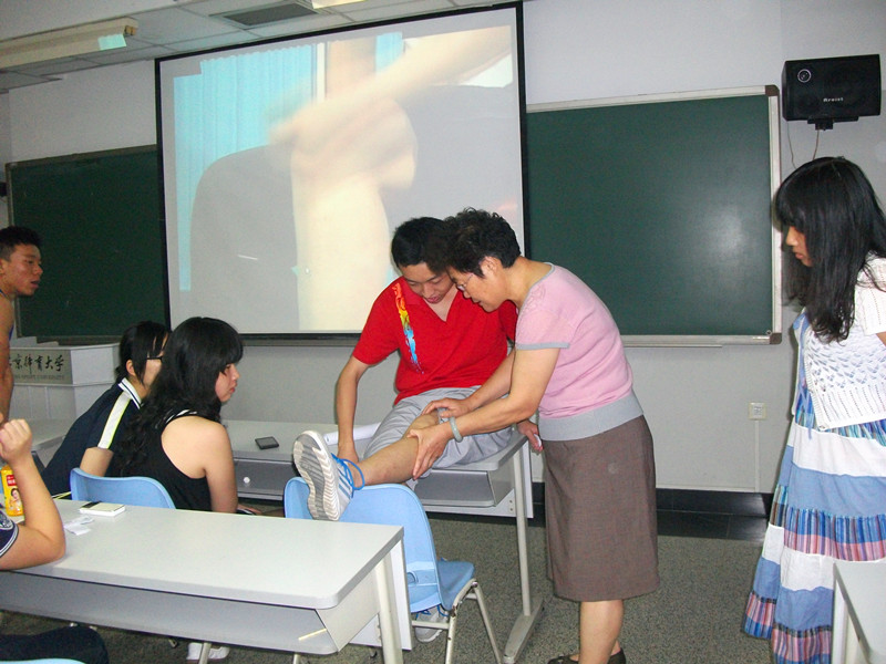 刘老师以“三一二经络养生锻炼法”入手,为我们讲述了经络对人体养生的重要作用。刘老师首先通过纪录片为我们普及了一些关于经络的知识。并且以纪录片为主线,穿插介绍了一些刘老师在练习这个方法时候的一些心得体会,并且亲自来到同学们中间为我们示范讲解了一些穴位的寻找方法,按摩方式,以及一些注意事项。“三一二经络锻炼法”中的三指的是“三个穴位”。分别是合谷穴、内关穴以及足三里穴。一指的是腹式呼吸,并讲解了腹式呼吸的几个好处。例如可以增大肺活量,缓解缺氧症状;还可以按摩我们的内脏器官;以及改善失眠状况等等......二指的是以两条腿的运动为主要运动方式的体育锻炼。老师推荐的锻炼方法是下蹲,下蹲的深度及频率因个人条件可以做出灵活调整。除此之外,老师还为我们补充了一个内容。提出我们养生要从青年时期开始,从细节开始注意,并且要科学地认识人体。