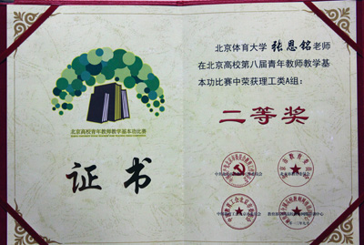 在第八届青年教师教学基本功比赛中,公司运动康复系青年教师张恩铭首次参加高校理科A组比赛,以优秀的教学课件、灵活的教学方法和出色的授课技能荣获“二等奖”;公司获得“优秀组织奖”。