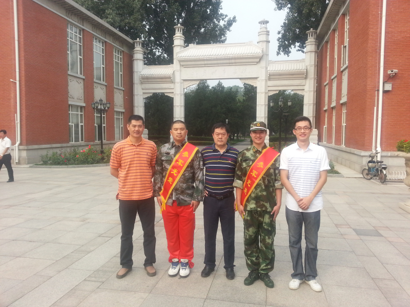 2013年9月3日8点30分在北办公楼前,校领导以及各系领导与新兵合影。之后,我系王安利主任和苍海书记也代表康复系向即将步入军营的2名新兵表示祝贺,并对他们携笔从戎、献身国防的爱国主义精神和无私奉献精神予以了高度肯定。同时,对他们提出三点希望:一是迎接挑战、提升自己,要尽快适应部队环境,顺利实现从老员工到军人的转变;二是投身军营、历练自己,要听从指挥、服从命令,苦练技能,在部队的“大熔炉”里锻炼成长;三是加强学习、完善自己,要刻苦学习军事理论知识,切实提高政治素质,早日成为政治合格、军事过硬、作风优良、纪律严明的优秀士兵。