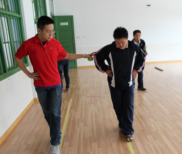 10月14日到10月15日的两天里,我们平均每天工作八小时,对学校的智力障碍孩子们进行了动作发育熟练度的评估测试。测试过程中,因为孩子们的智力障碍,我们必须在规范性和专业性的前提下对他们进行耐心的指导,每个人都兢兢业业地高质有效的完成了自己的工作,并在第一站长沙站获得了四个分队中最多的有效样本。