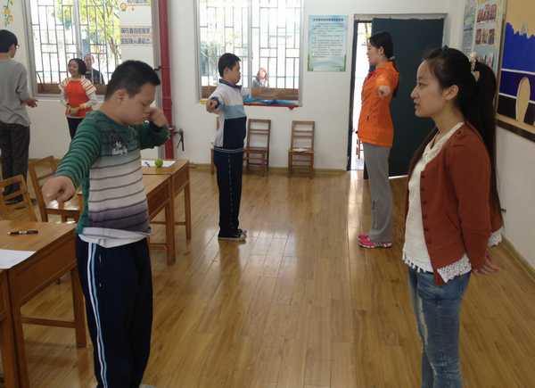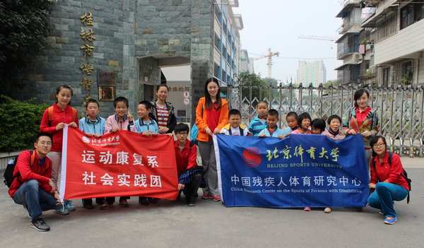 10月20日,我们在队长的带领下找到了桂林市特殊教育学校,见到了负责接待我们的老师,在跟老师讲解完我们本次桂林站的任务安排之后,我们就忙着布置下午测试的场地,并且摆放器材。下午两点测试正式开始,虽然经过了昨天一天的长途火车的奔波,但队友们都没有把这种疲倦的状态带到测试中,大家还是充满活力地对当地的孩子们进行测试,毫无抱怨的情绪,与此同时,我们西南分队的指导教师白玉茗老师也在百忙之中抽出时间从北京飞往桂林来探望我们。当地的孩子们也对我们非常友善,虽然他们的智力存在着些许问题,但是对我们的到来也感到十分新鲜和开心。
