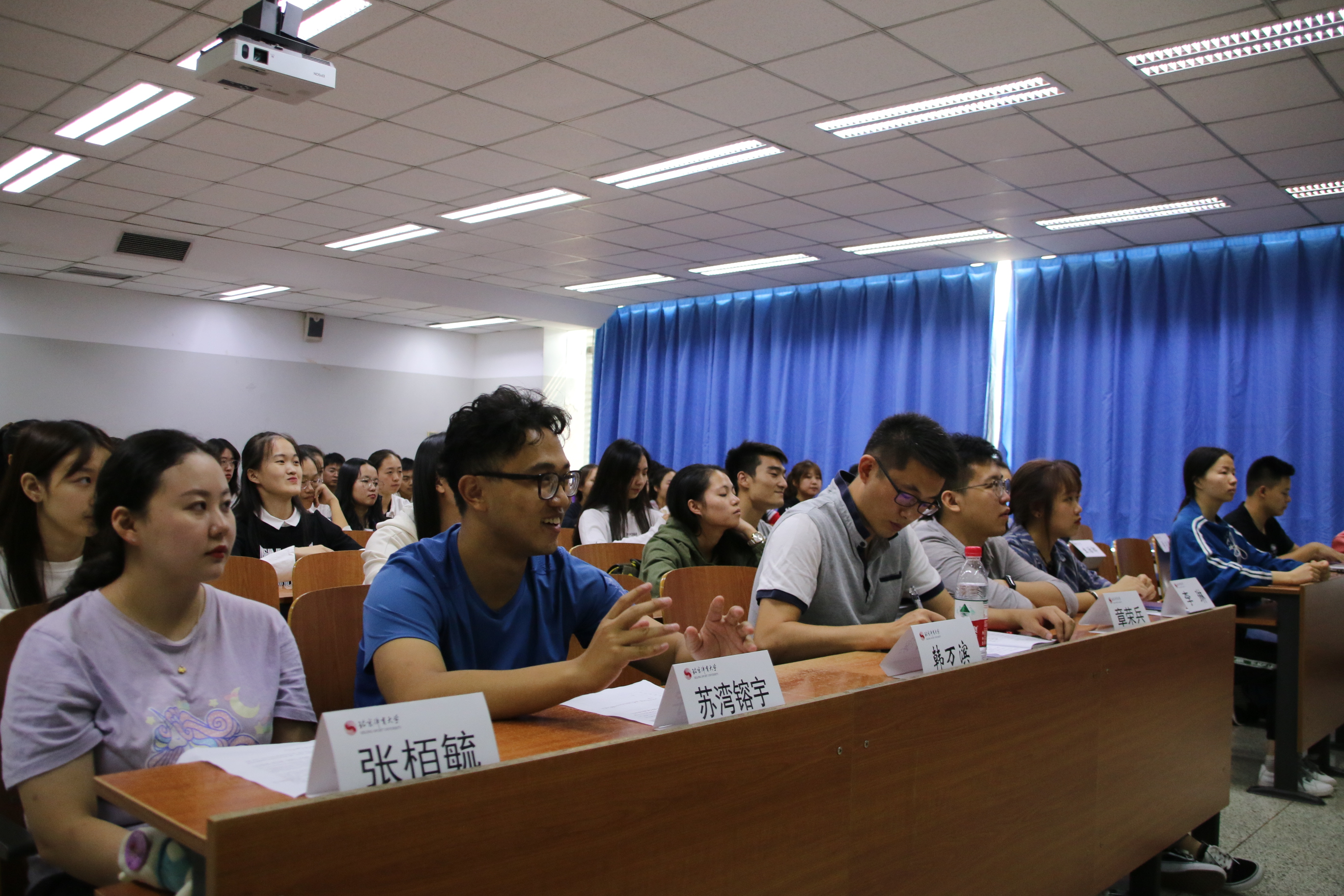 中午12:15,员工会各部门成员陆续入场并有序入座,主席助理凌慧贤宣布第十二届团总支员工会第一次大会正式开始。本次大会的与会人员有betway88西汉姆联团总支书记、2016和2018级本科辅导员韩万滨老师,第十二届团总支员工会主席苏湾镕宇,常务副主席张栢毓,副主席李琳、章荣兵,以及员工会全体部长级和干事。