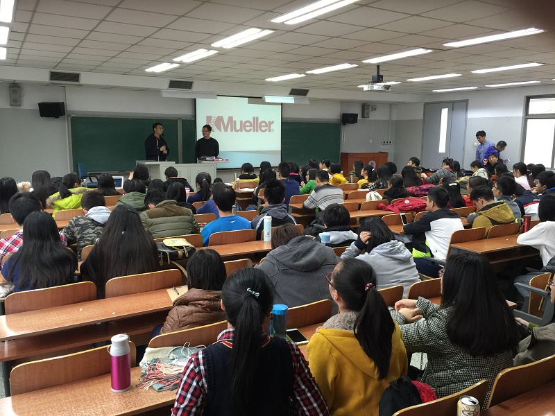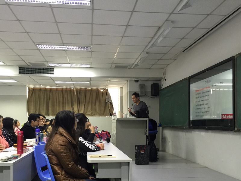 为促进我系实践教学的健康快速发展,为我系《运动贴扎》课程以及科学研究提供更多经济和材料支持,扩大我系社会影响力,经我系领导与美国最大运动防护品牌Muller公司相关人员的多次磋商,与其达成初步合作意向。根据合作内容,2015年11月17日、18日两天,美国 Mueller公司的大中华销售总监李振维先生,为我系的员工进行了贴扎与护具的基本知识讲座。运动康复系副主任矫玮教授,运动康复教研室侯世伦副教授出席讲座,并致辞欢迎李先生的到来。