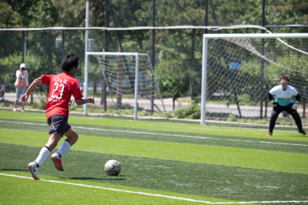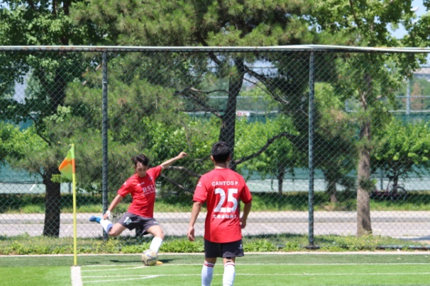 上半场开场,管院男足进入状态较快,进攻强势且凶狠,但我方防守稳固,没有给对方射门机会。第22分钟,9号乔纳森反越位成功外脚背直挂球门远角,公司男足先下一城!第40分钟,管院后卫冒顶将球漏给了禁区内埋伏已久的25号瑞倪,瑞倪接球后冷静推射球门远角破门得分。半场战罢,公司男足以2:0领先对手。