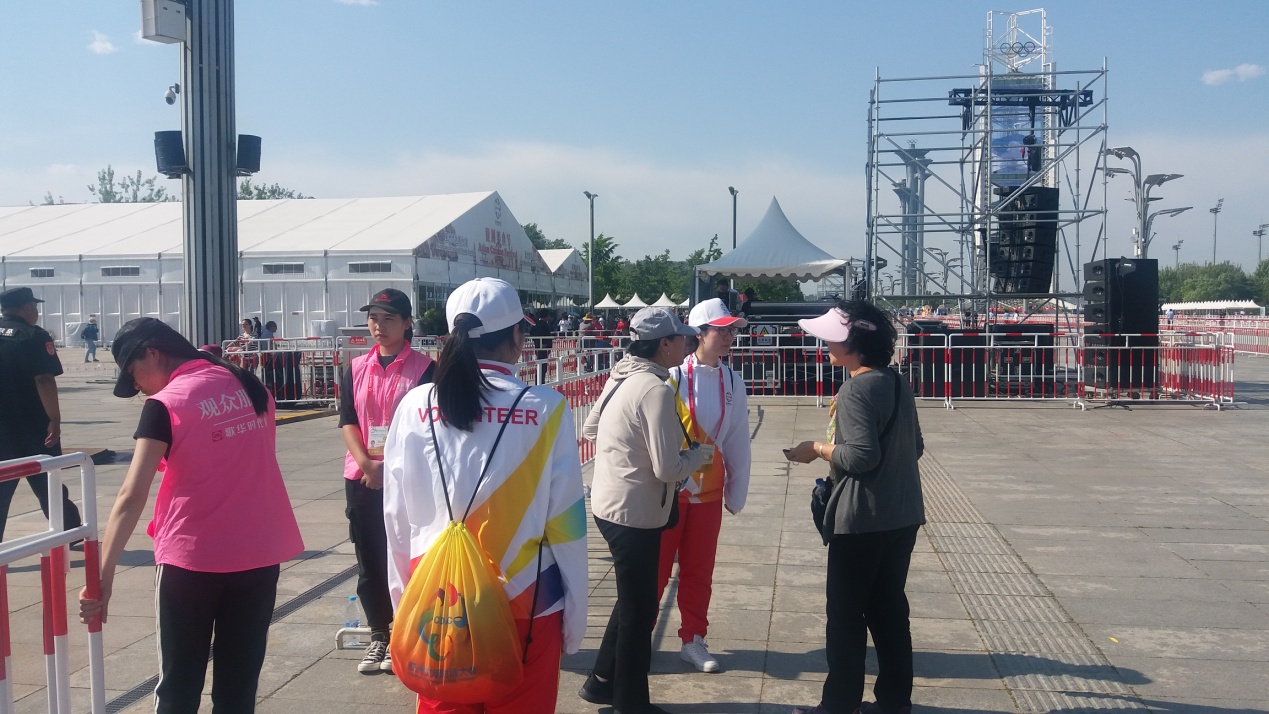 同学们的任务是在玲珑塔安检口做安检辅助工作,提醒观众提前准备好身份证件和入场票,引导已安检的观众入场,表演结束后疏导观众有序离场,并为观众提供咨询服务。虽然同学们体力消耗大、天气炎热,但大家努力克服困难,工作积极性高涨,每个人都以饱满的热情、严谨的态度和细致的工作出色完成了各项工作任务。