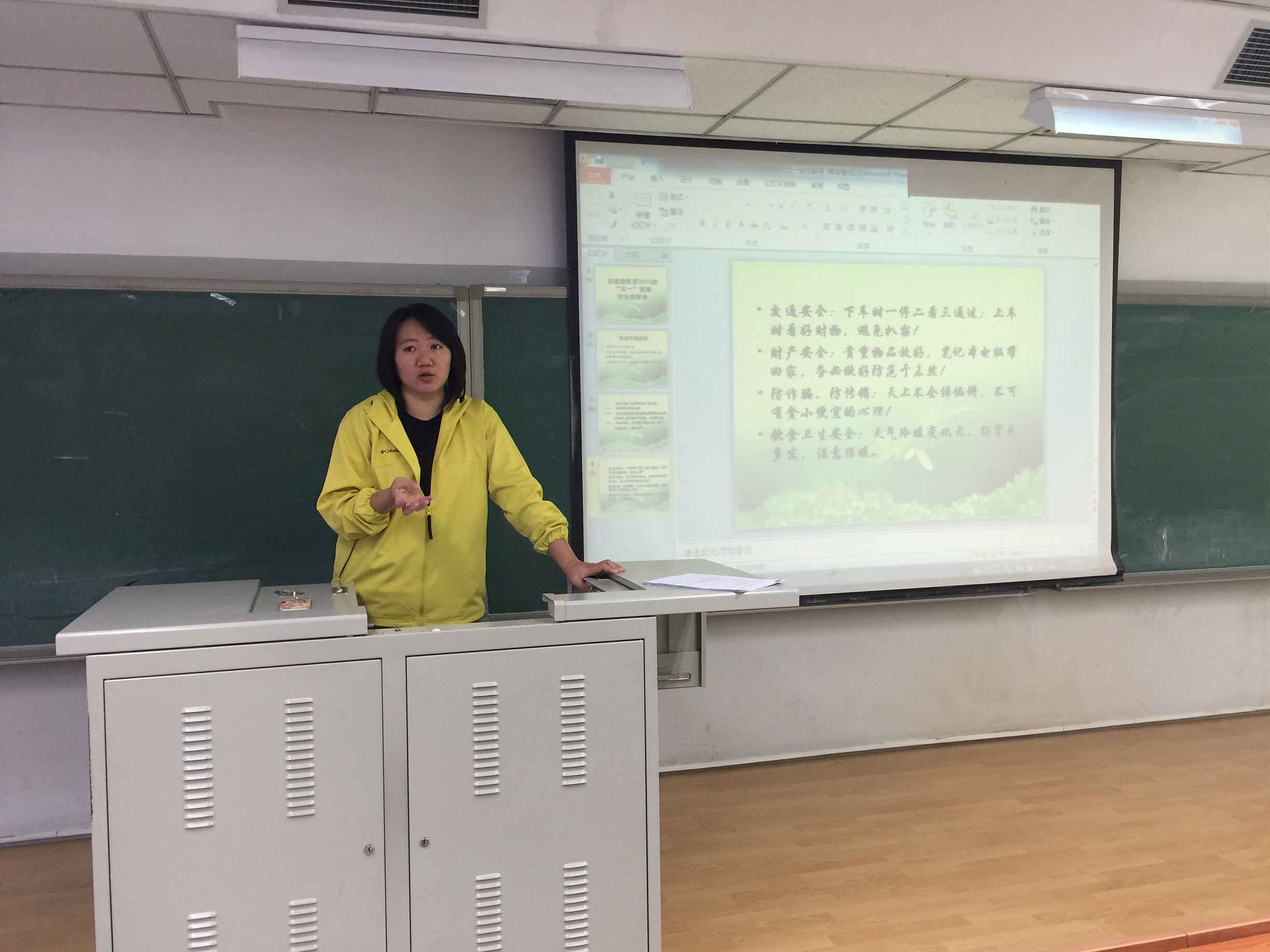 2017年4月26日动康复系2015级五一假期安全教育年级会在教学楼515教室顺利召开,运动康复系团总支书记、2013级、2015级辅导员白玉茗老师出席并主持了会议。