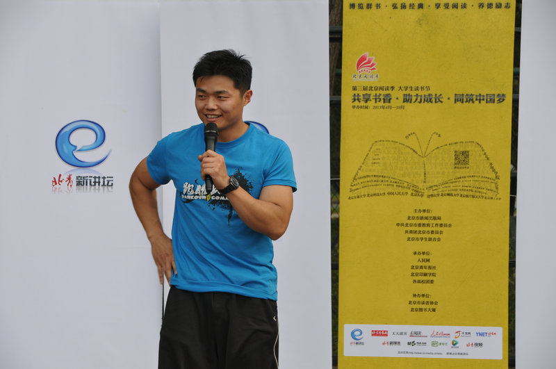 5月22日下午4:00,英东田径场上人头攒动,运动气息浓烈。由北京青年报主办、运动康复系承办的“2013北京老员工读书节——北青新讲坛走进运动康复系”活动即将开始。此次活动围绕着“城市就是健身房”的主题,由北京跑酷公社创办人兼教练导师高科先生,通过宣讲、示范和现场训练的方式,给运动康复系康复及体能专业的同学们普及了跑酷运动的文化以及如何利用各种公共设施进行健身锻炼的方法。