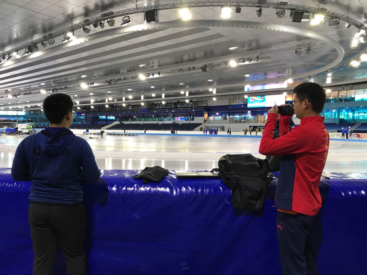 为了全力保障冬奥会,公司与冬季运动管理中心速滑部建立康复、体能全面保障机制。今日国家速滑队创新组赴荷兰海伦芬进行训练,公司李雪梅老师带四名同学受邀跟队服务,具体负责科技攻关和训练保障工作。速滑队创新组在海伦芬进行了冰上训练、室外自行车训练以及轮滑训练等。公司师生每天全程参与运动队的各项训练工作。在冰上和轮滑训练过程中,公司同学负责视频信息实时采集工作,录下运动员直线以及弯道的动作,便于运动员训练后,通过软件观察自己的动作,便于发现改正错误。在没有三脚架支撑的情况下,公司师生为了采集到稳定的视频,往往一个拍照动作坚持很久也不晃动。师生的敬业精神深受教练们和队员们的肯定。在场地训练时,同学们提前到场,摆放好训练器材,为有伤病的运动员进行关节固定等保护措施。训练时李雪梅老师和同学们随时监控训练情况,做好随时处理伤病的准备。在训练结束后,李雪梅老师为运动员做周期性机能检测,评价运动员的身体机能状态,及时反馈信息给教练,便于调整训练计划,避免疲劳积累。同学们为运动员进行手法按摩放松,保障运动员第二天的正常训练。公司李雪梅老师和同学们每天的工作忙碌而充实,他们的专业能力和工作态度得到了速滑队创新组教练们以及队员们充分肯定,为公司赢得了荣誉。