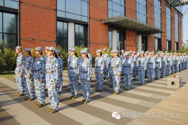 2016年9月10日上午7时整,运动康复系2016级本科新生整齐的集结在国训馆前,开始了军训生活的第二天。
