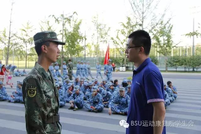 经过了中午短暂的休息,同学们昂首阔步来到了训练场并展开了下午的训练。教官讲述了队列行进的要点,做出示范;同学们仔细倾听,悉心学习。与此同时,2016级运动康复系辅导员韩万滨老师来到训练场,检查同学们的训练状态并向教官询问员工们的训练态度。辅导员的到来,让同学们兴奋不已,大大地提高了员工们训练的热情。