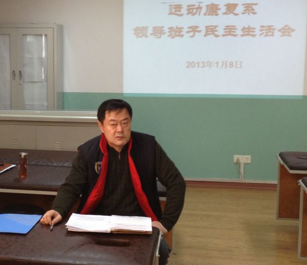 2013年1月8日下午,运动康复系在教学实验楼410教室组织召开了系领导班子民主生活会。纪委监察审计处尹东锁老师出席会议。运动康复系全体在岗教职工参加会议。会议由党总支书记苍海主持。