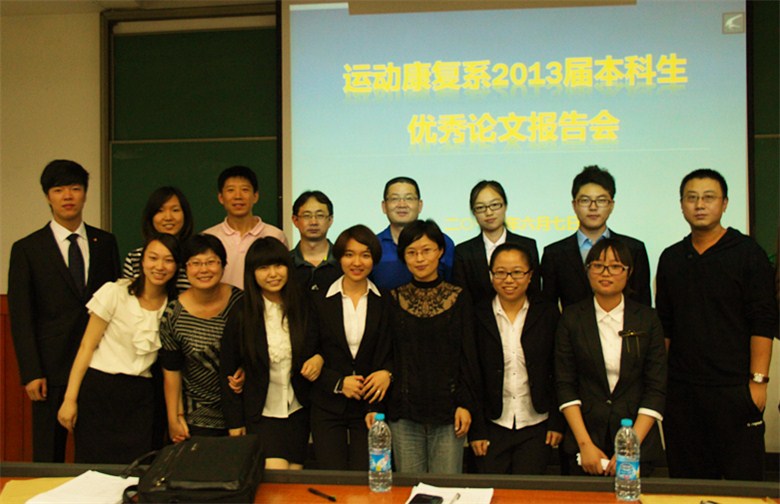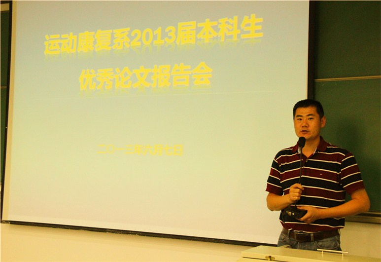 2013年6月7日,正逢全国高考,就如同万千考生将为自己的寒窗十载交上最重要的一份答卷,我们的毕业生凝集四年精粹,教研室寄予权威厚望,引航下届宏图展望:一年一度的运动康复系优秀毕业论文报告会于下午2:30在教学楼315教室隆重召开。出席此次报告会的嘉宾有运动康复系党总支书记苍海,辅导员杨之慧老师,我系教师黄鹏老师、张恩铭老师、卢玮老师、闫会萍老师和张新老师。评委组成员有:高颀教授,毛杉杉副教授,魏宏文副教授,侯世伦副教授,白震民副教授。此次报告会由办公室主任孙恺羚老师主持,2010级康复和体能班员工全体参会。
