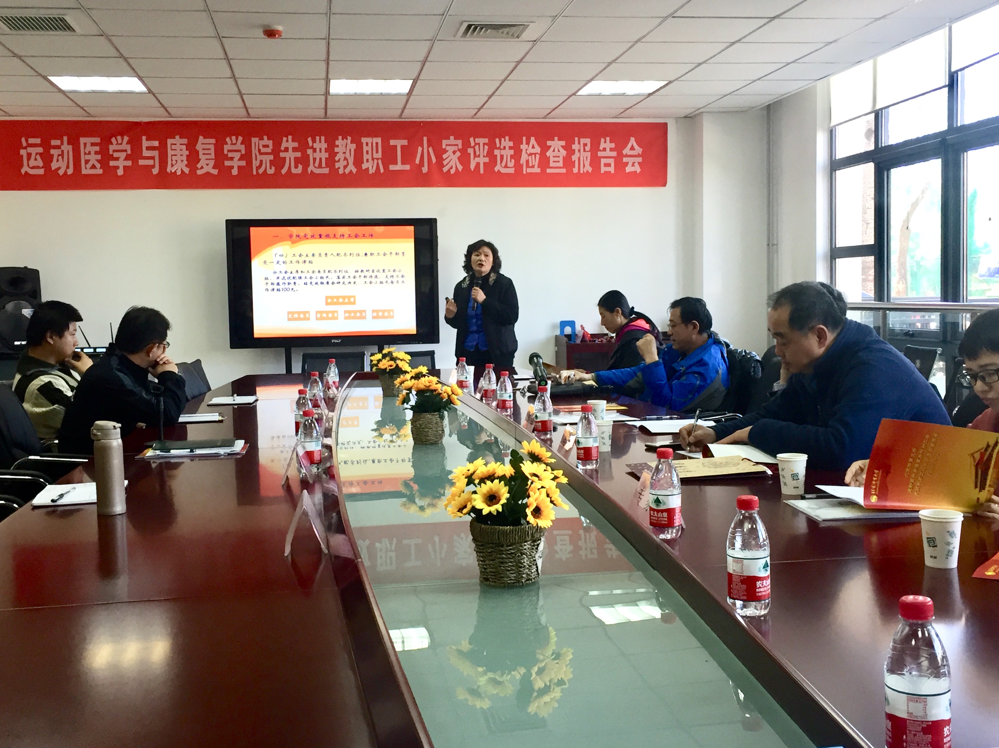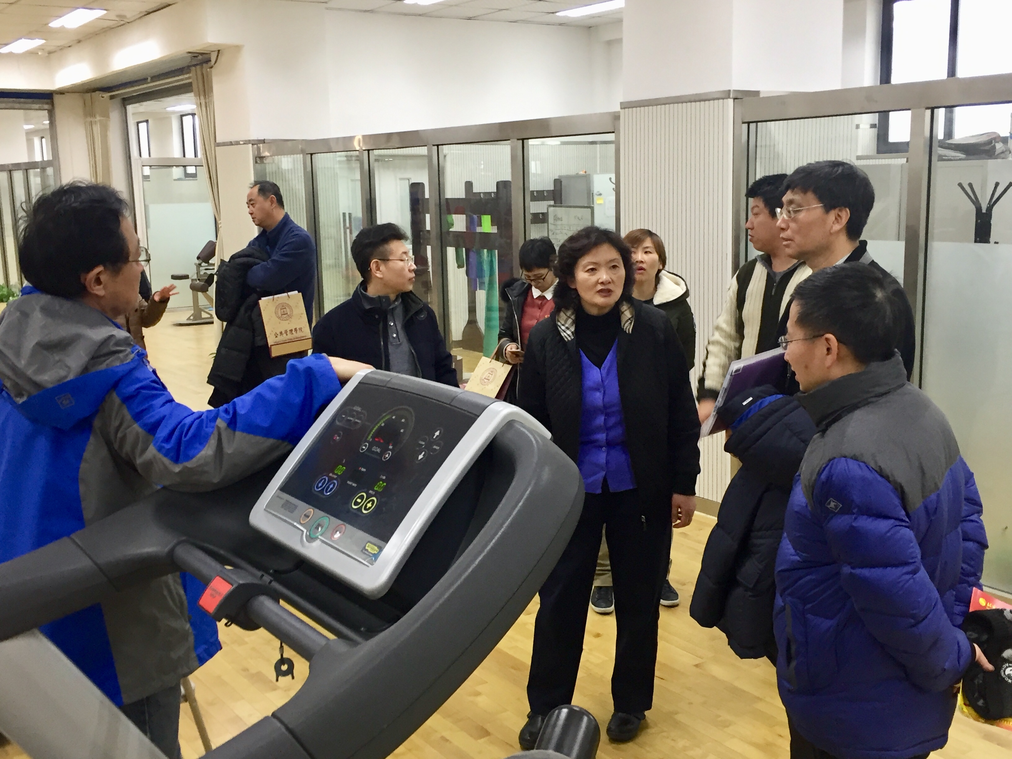 首先,分工会主席李荷对照《北京市教育系统建设职工小家自查验收标准(试行)》,以“推进教职工小家建设,开创学院工会工作新局面”为题目,从党政重视支持、积极推进民主政治建设、依法维护教职工权益、加强教职工队伍建设、工会组织建设、工作中存在的不足等六个方面向检查组进行了汇报。汇报结束后,检查组就关心的问题进行了提问。随后,检查组查阅了相关材料并实地考察了公司的教职工之家,同时参观了运动康复中心。
