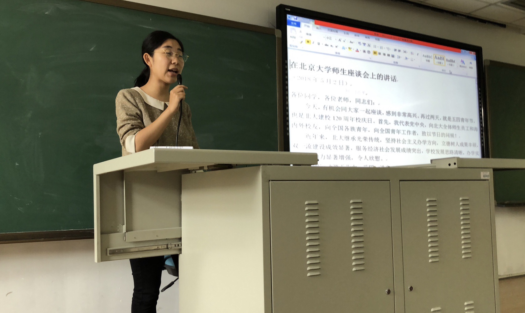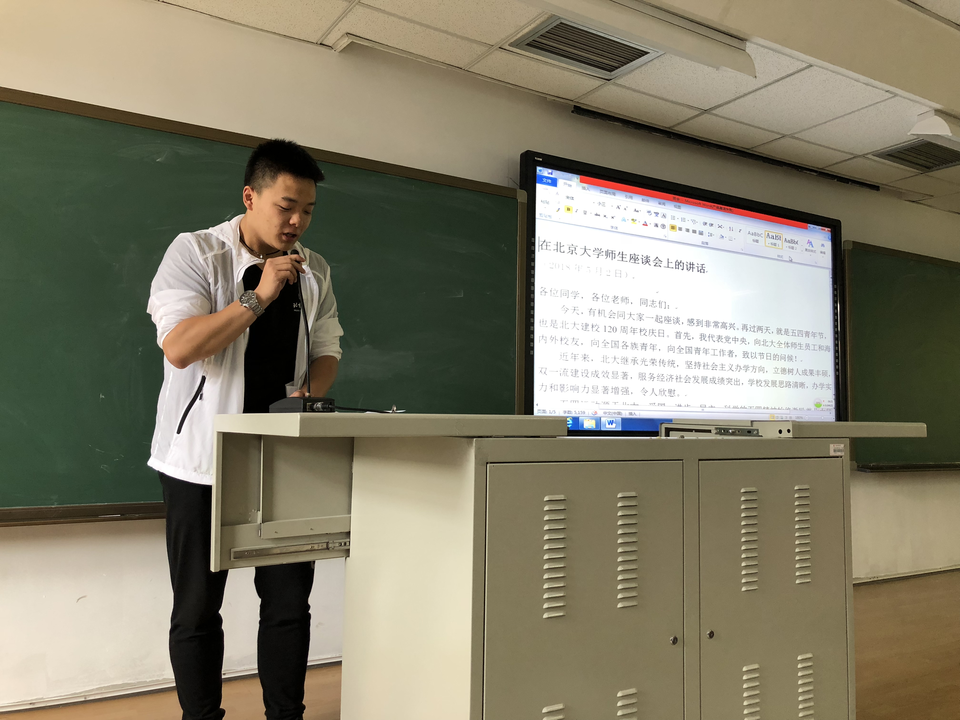 活动开始,团支部委员带领同学们学习了习近平总书记5月2日视察北京大学时在师生座谈会上的讲话。在北京大学120周年校庆之际,又恰逢五四青年节,讲话对高校和青年员工提出了殷切期望和要求,讲话指出:大学对青年成长成才发挥着重要作用,只有抓住培养社会主义建设者和接班人这个根本才能办好,才能办出中国特色世界一流大学。同时,总书记也对广大青年提出了四点希望:爱国、励志、求真、力行。从总书记的讲话中,同学们感受到了党中央对青年一代的亲切关怀、高度重视和殷切厚望,同时也意识到作为一名老员工所肩负的重任。习总书记还引用“道虽迩,不行不至;事虽小,不为不成”,生动讲明了做事不能眼高手低、要深入实践、实践出真知的道理。曾经,青年一代是革命时代不可或缺的力量,具有高涨的革命热情,如今,在和平发展的时代背景下,青年一代作为祖国未来的接班人,更是肩负着国家和民族发展的重任。