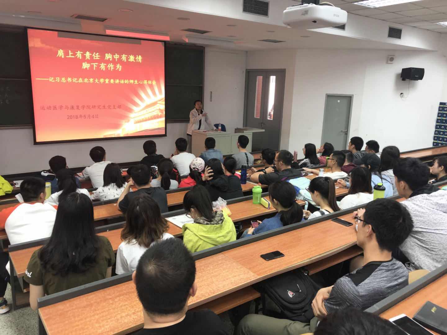首先,同学们观看了5月2日习近平总书记视察北京大学的新闻视频,然后对总书记的重要讲话全文进行了学习。总书记的讲话,对高校建设、人才培养和青年员工提出了殷切期望和具体要求。习总书记指出:广大青年既拥有广阔发展空间,也承载着伟大时代使命。四年前,习近平总书记在视察北京大学时对广大青年提出了“勤学、修德、明辨、笃实”四点要求,四年后又对广大青年提出了 “爱国、励志、求真、力行”的新希望。