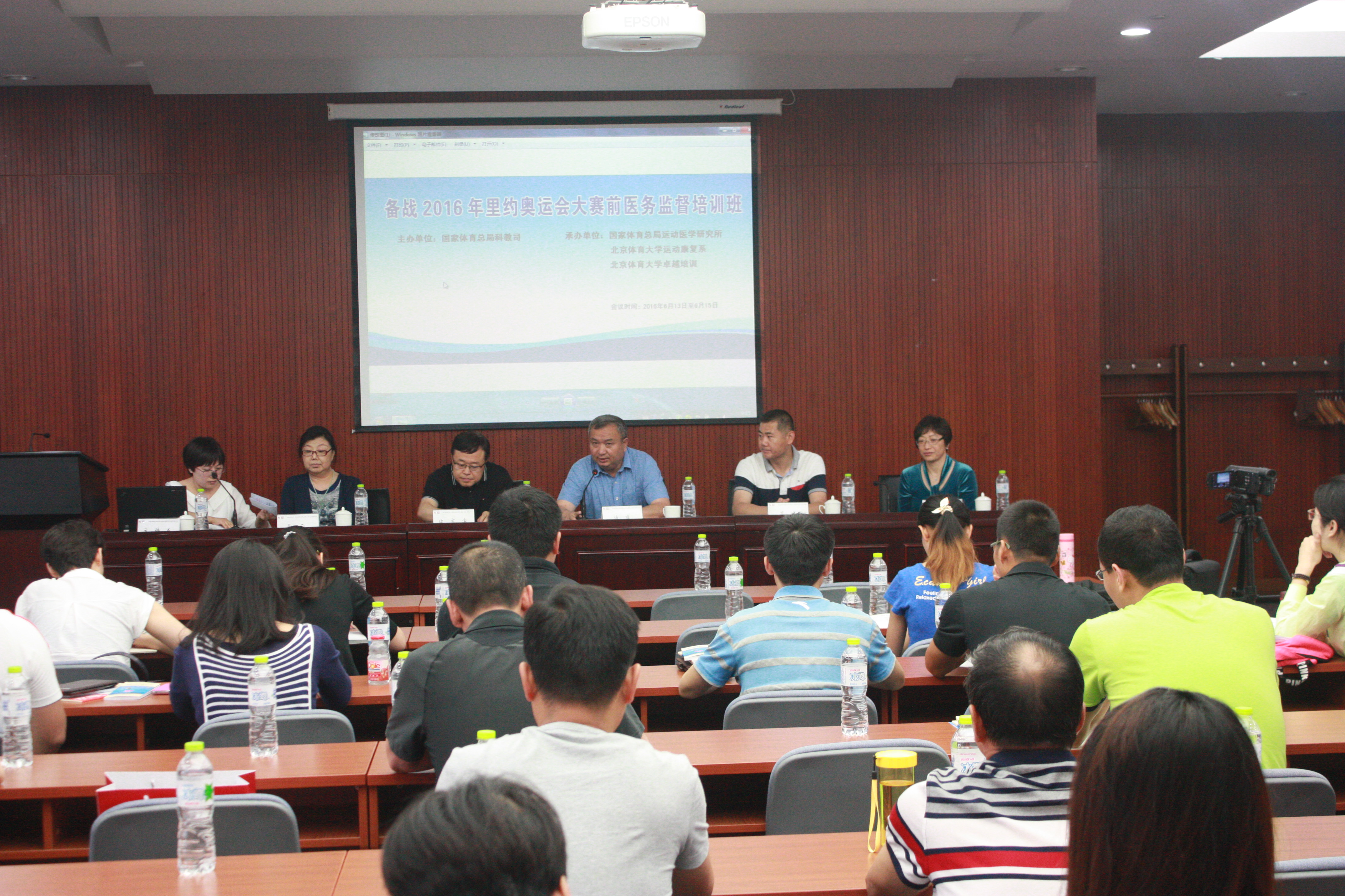 为了进一步做好备战里约奥运会的医疗保障工作,针对奥运会大赛前应经常遇到的问题和防范大赛前重大疫病,由国家体育总局科教司主办,国家体育总局运动医学研究所和bw必威西汉姆联官网联合承办,北体科技中心协办的“备战2016里约奥运会大赛前医务监督培训班”于今天上午9点在bw必威西汉姆联官网国家队训练基地运动员公寓B座一层会议室举办了简短的开班仪式。