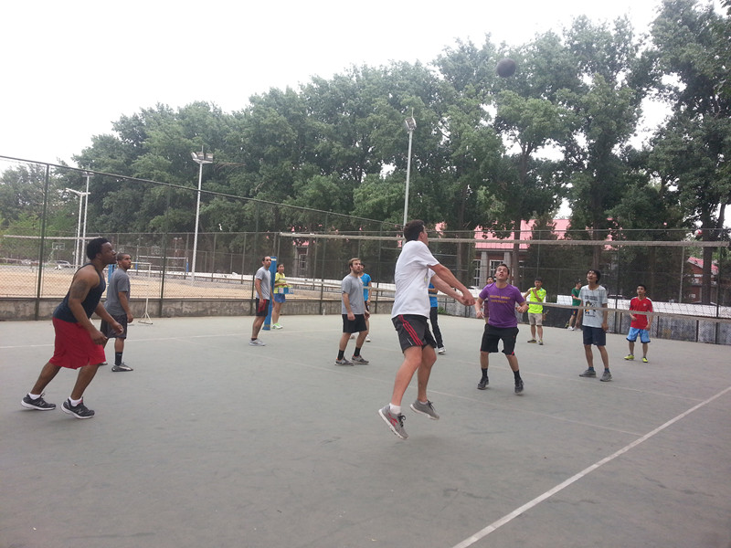 而康复系对阵交流生的男子比赛紧随着女子比赛开始了,其中更是亮点频频。比赛中,康复系的男队员们战术变化莫测,时而短平快,时而后排抢攻,时而四号位平拉开,展现了康复系男队的强大实力。而美国交流生队则凭借着自身高度和出色的弹跳能力拥有了制空权,多次抢网得分。比赛胶着难分。比赛如火如荼地进行着,双方比分交替上升,每个队员都表现出了强烈的取胜欲望,场下的观众更是焦急万分。但康复队最后以强大的配合、出色的发球扣球能力合稳定的一传,最后以2:0赢得了比赛。
